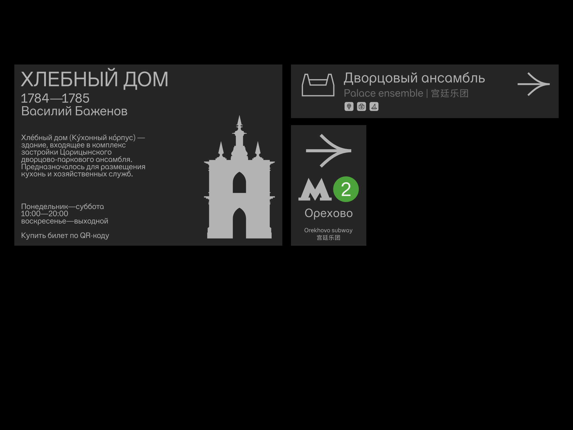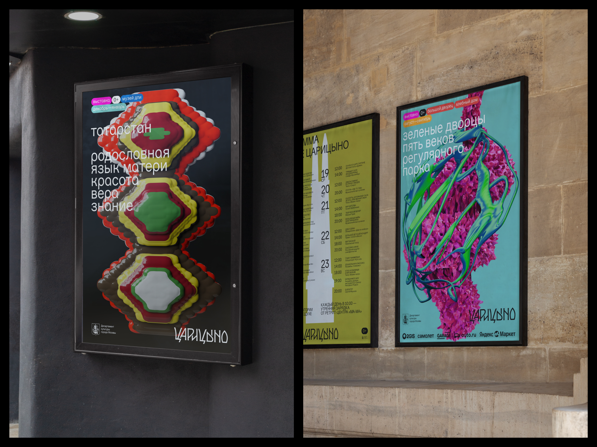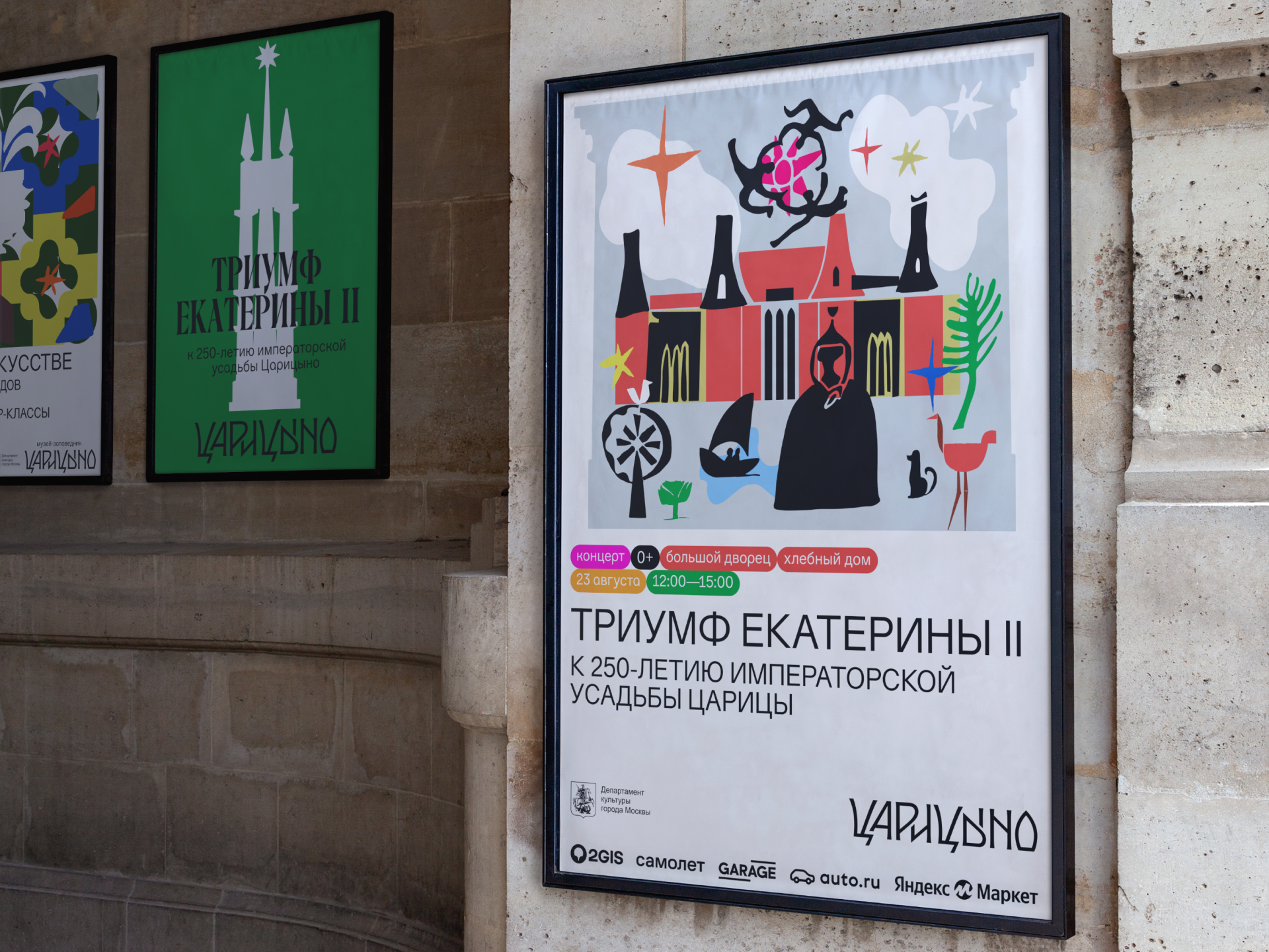 Tsaritsino is a representation of the method of interpreting and synthesizing two cultures — Russian and Western. Tsaritsino was designed as a vast experimental space and continues to be such for the contemporary user. Made in collaboration with Designworkout. Developed a visual system for various types of communication, created layouts, documented guidelines, designed merchandise, supported the implementation of the style through real-world projects, and oversaw art direction and rollout.